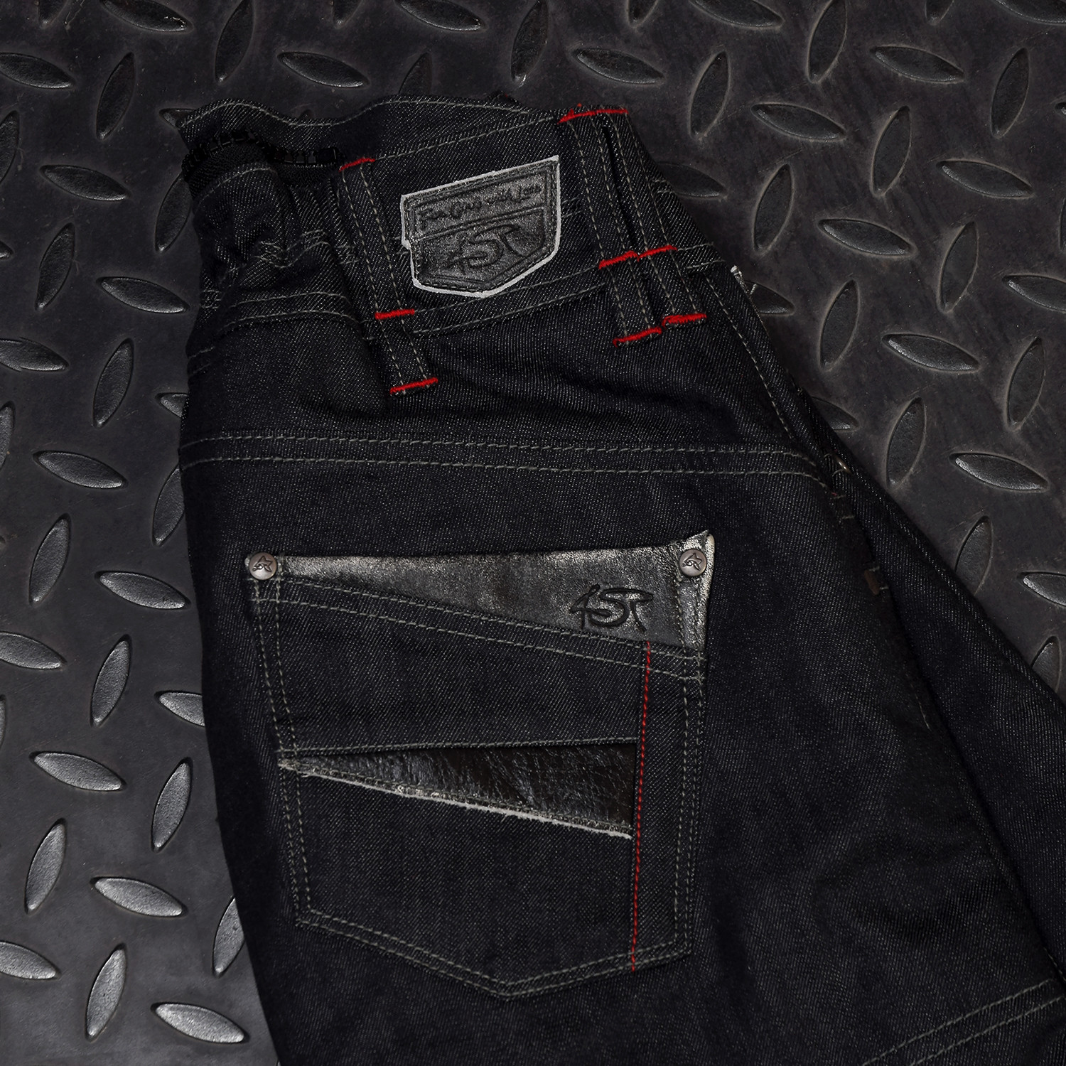 Motorjeans van 4SR For Street Racing zijn gemaakt van zwart 14 ounce denim, maar dankzij het toegevoegde elastaan ​​is het voldoende flexibel en comfortabel. De knieën en het zitgedeelte zijn versterkt met echte DuPont ™ Kevlar®.