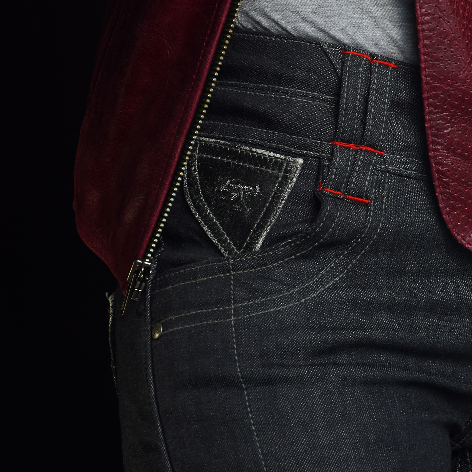 Jeans 4SR is de enige kevlar-jeans op de markt, die de fixatiepads op de juiste plaats heeft en aan de hoogste certificeringsnorm voldoet. We hebben net de fixatie gepatenteerd.
