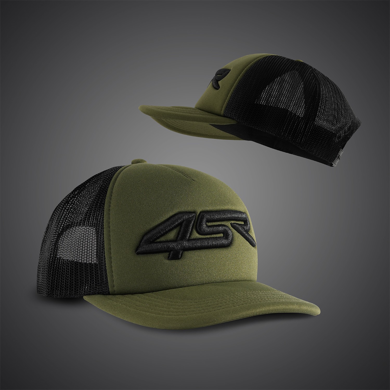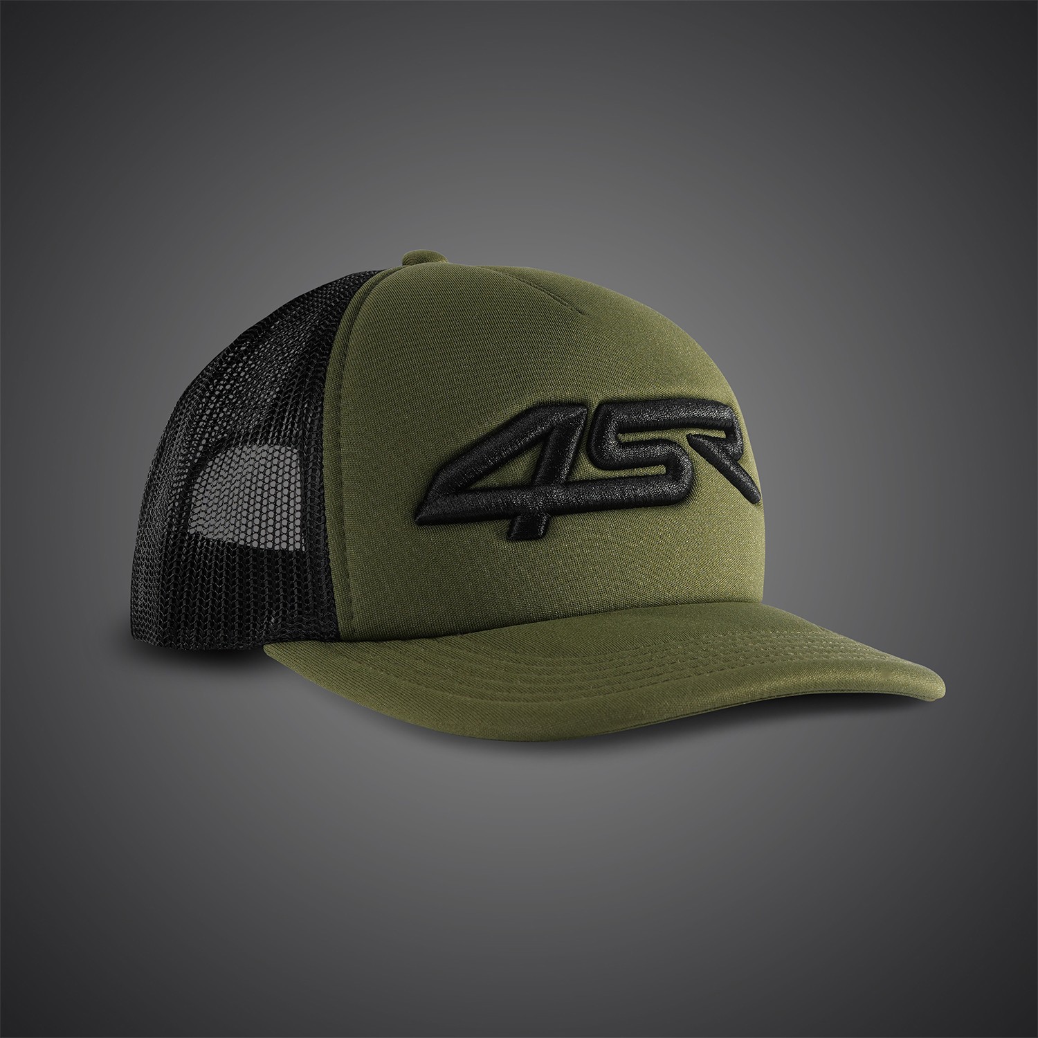 Foam pet met licht gebogen klep en een geborduurd 3D 4SR-logo.