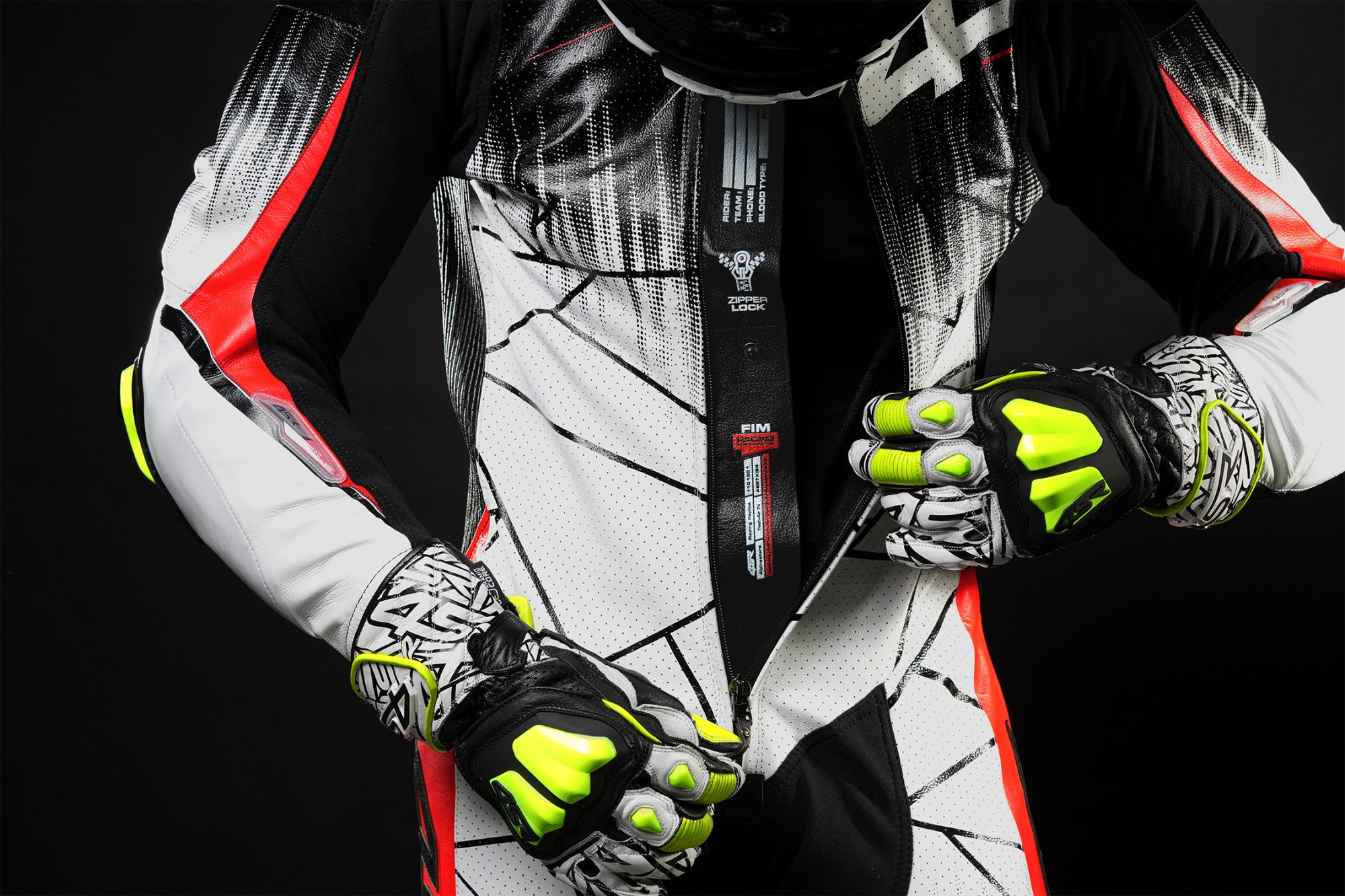 ZIPPER LOCK voorkomt dat het pak naar beneden zakt en houdt alles op zijn plaats, zodat je je vrij kunt bewegen in de pitbox – zelfs wanneer het pak open is.