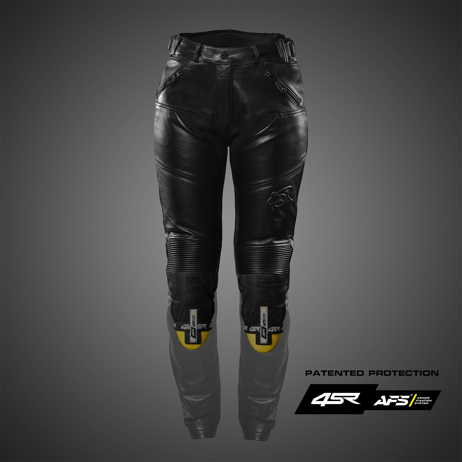 De broek is gemaakt van 1,1 mm dik rundleer en past perfect bij de 4SR leren jassen. Net als andere 4SR leren motorbroeken zijn ze uitgerust met een korte en een volledige verbindingsrits voor een stevige en veilige koppeling met de jas.