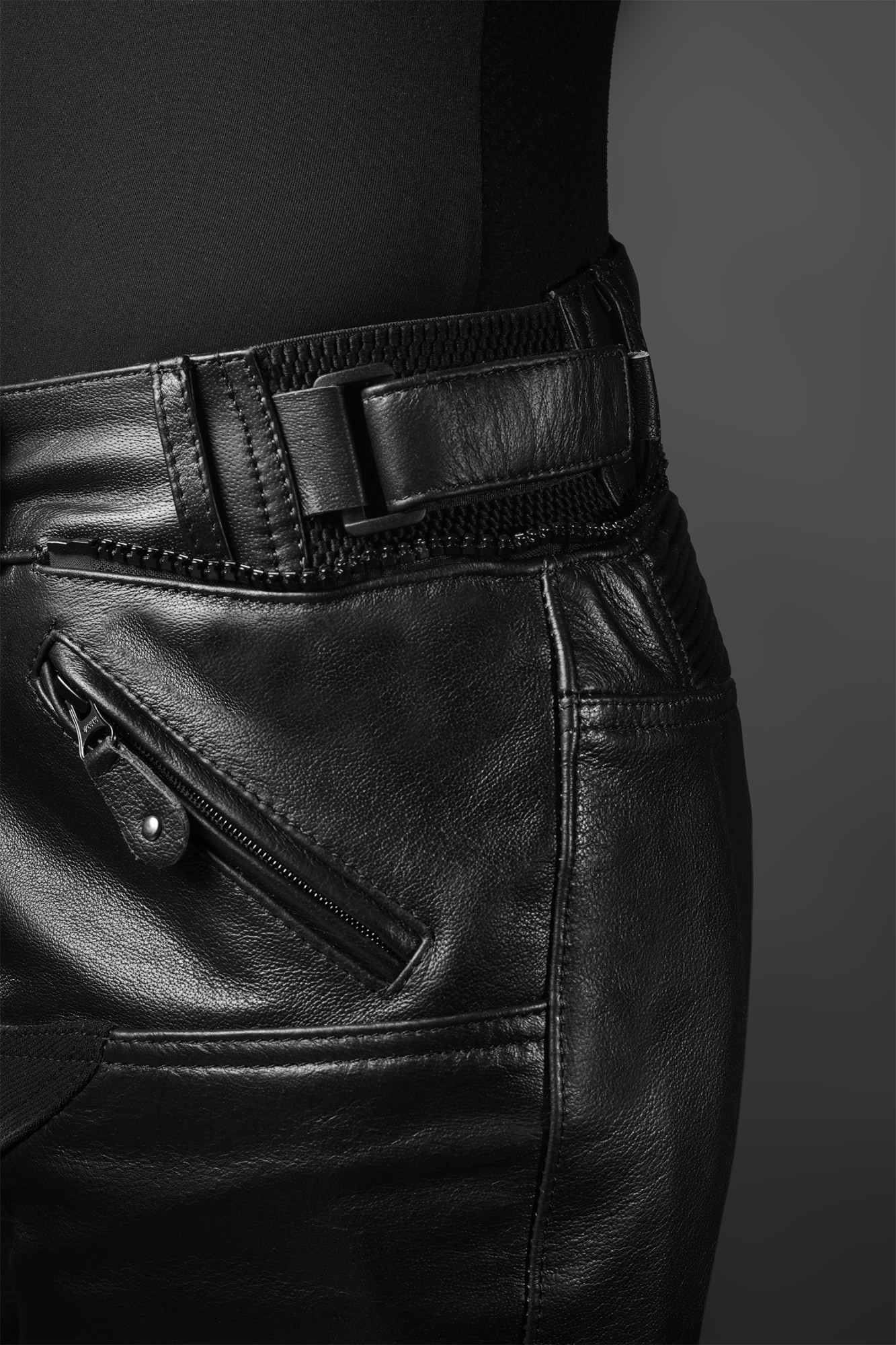 Ook de verlenging en het flexibele paneel in de lendenstreek zijn opnieuw ontworpen. Het achterste deel van de broek is hoger, comfortabeler en sluit beter aan op de jas wanneer deze met een korte of volledige rits wordt verbonden. Dit zorgt voor meer comfort in een voorovergebogen rijpositie en betere bescherming van de onderrug tijdens het rijden.