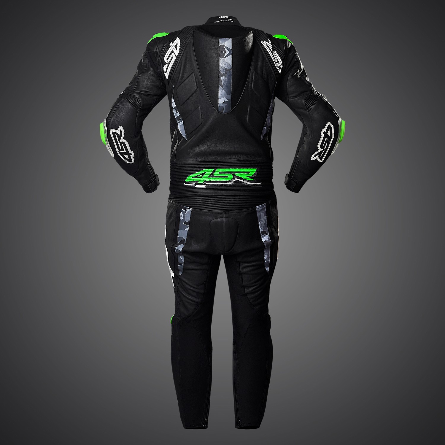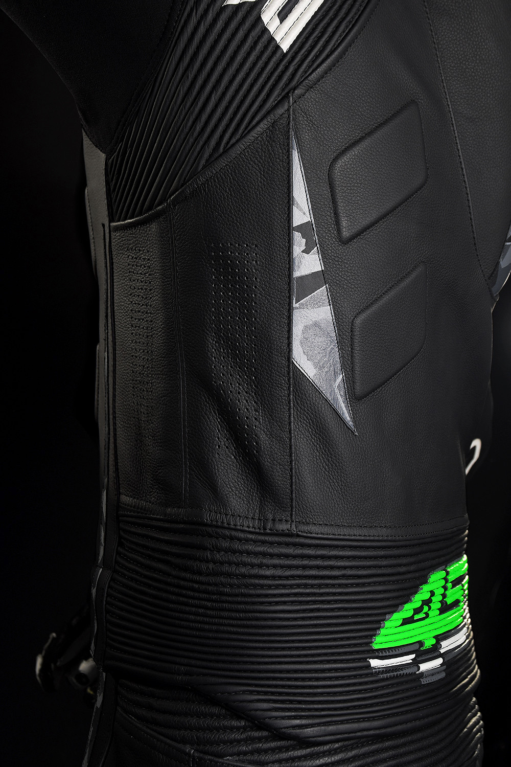 Het tweedelig racepak RR Evo III Monster Green is gebaseerd op racepakken van onze professionele rijders. Ze gebruiken dezelfde veiligheids- en functionele elementen op hun racepakken. We maken geen verschil, daarom zijn de duurste 4SR racepakken gemaakt van hetzelfde leer, genaaid met dezelfde technologie en uitgerust met dezelfde beschermers als racepakken ontworpen voor u, klanten.