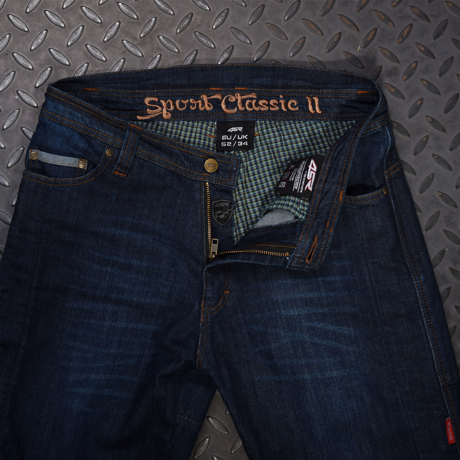 De Sport Classic II kevlar jeans zijn een andere variant van 4SR kevlar broeken met het gepatenteerde bevestigingssysteem voor protectoren.