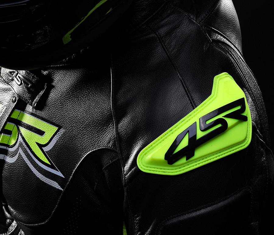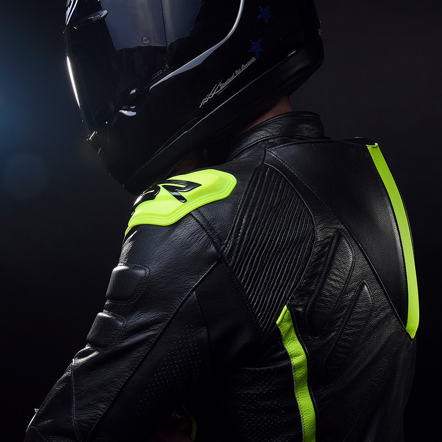 De bult zorgt voor de juiste aerodynamica, de mobiliteit van deze motorjas zorgt voor flexibele panelen.