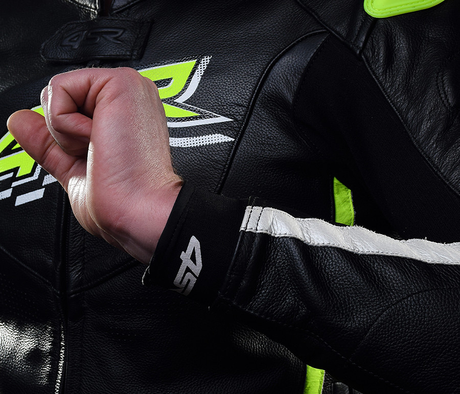 - uitgebreide stretch stretch mouwen en flexibele, lederen panelen voor verbeterde mobiliteit van de motorfiets